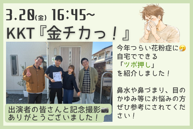 いよいよ明日、3月20日(金)放送のKKT『金チカっ!』に、院長が出演させていただきます!